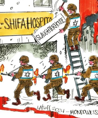 PALESTINEWar crime2024.04.01Al-Shifa hospital : 400 people massacred including a female doctor and her son, also a doctor, and put the medical facility out of function.Gaza CityRead ...